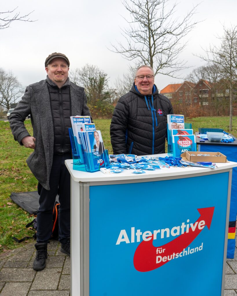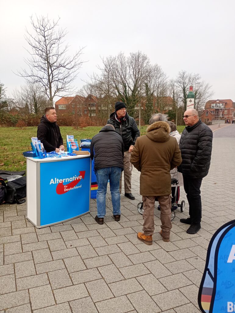 Unser Infostand am Montag in Norden erzeugte reges öffentliches und mediales Interesse. Ein offensichtlich nicht angemeldeter Gegenprotest einer Handvoll Letztwählerinnen der Omas gegen Rechts trug zum Erfolg bei. Etliche gute Gespräche, erfreulicherweise mit vielen Jungwählern, konnten geführt werden. Drei Besucher des Infostandes haben spontan ihren Willen zu einer Mitgliedschaft bekundet.